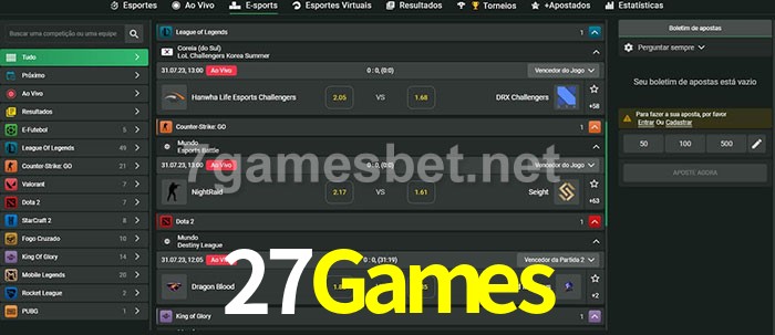 O 27Games oferece uma grande seleção de opções de apostas em e-sports com probabilidades competitivas